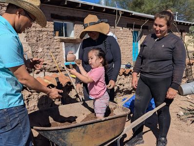Participants in the Hands-On Historic Adobe Preservation Workshop at the Historic Pennington House in Tubac’s National Historic District helped restore the old adobe building that has been at the center of Tubac community life for over 175 years. New owners, Diane Janssen and Kirk Gilliam, invited the community again to participate in sustaining this Tubac Heritage Treasure. They sponsored a series of adobe restoration workshops that helped participants learn skills to restore adobe buildings while helping to preserve the Historic Pennington House. After two days of training, the participants demonstrated their newly acquired adobe brick-making and preservation skills Friday, Oct. 24 during the Anza 250th Commemorative activitie